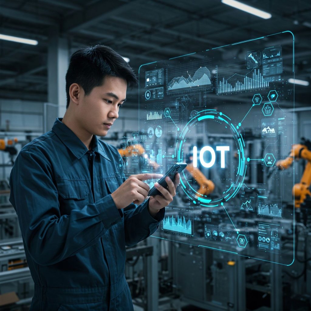 Colete dados de máquinas em tempo real, melhorando manutenção e eficiência.